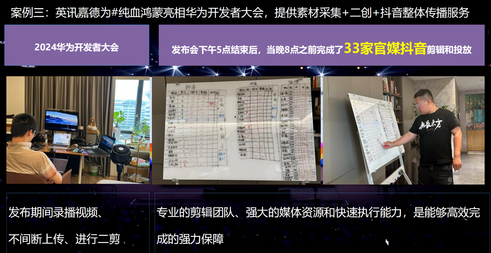 内容端:企业有初稿则提供风险排查、价值重塑等优化服务;无初稿则协同完成图文创意、视频摄制等共创工作,确保内容兼顾企业预期与官媒要求;