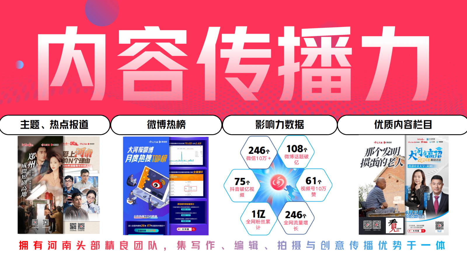 专业对接:我们将基于对《大河报》《豫视频》平台的深度理解,我们将根据您的方案深度对接,保证内容发布质量。